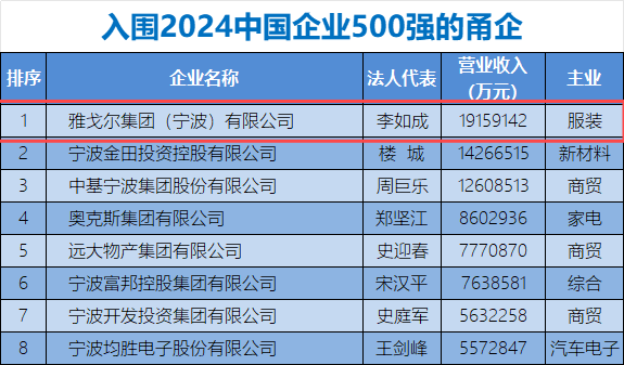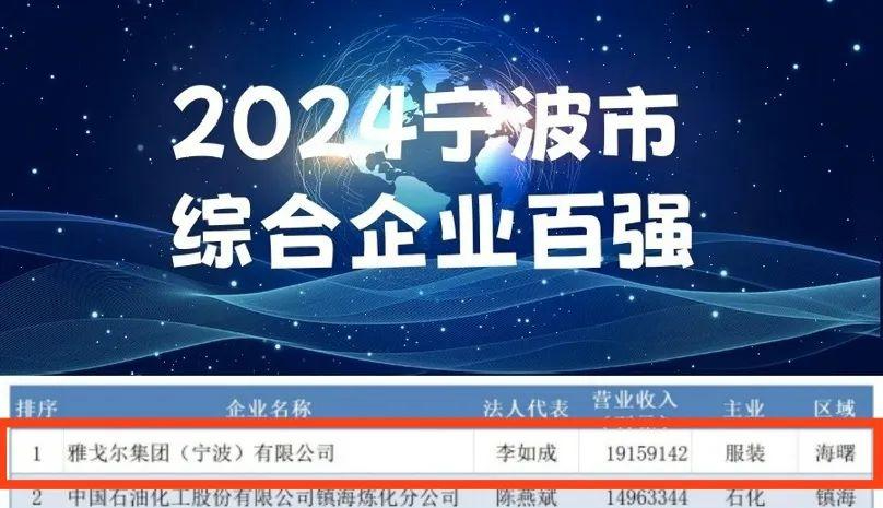 2024宁波综合企业百强榜发布:雅戈尔连续四年荣登第一!