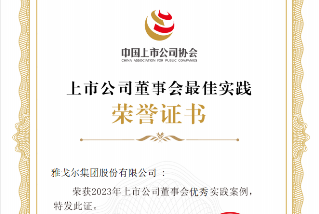 雅戈尔入选“2023 上市公司董事会优秀实践案例”