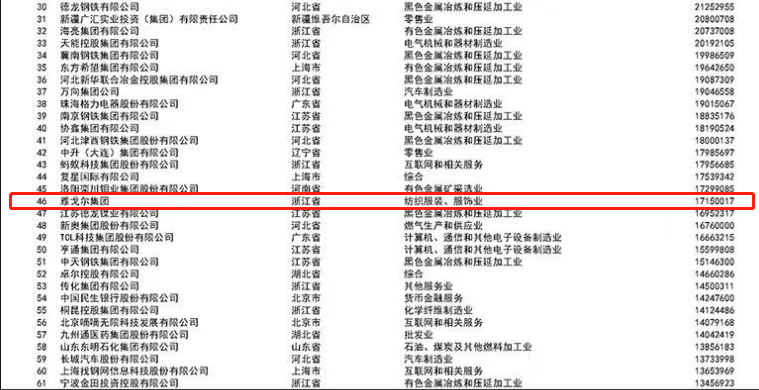 2023中国民营企业500强榜单发布,雅戈尔集团位列第46位,上升6位!