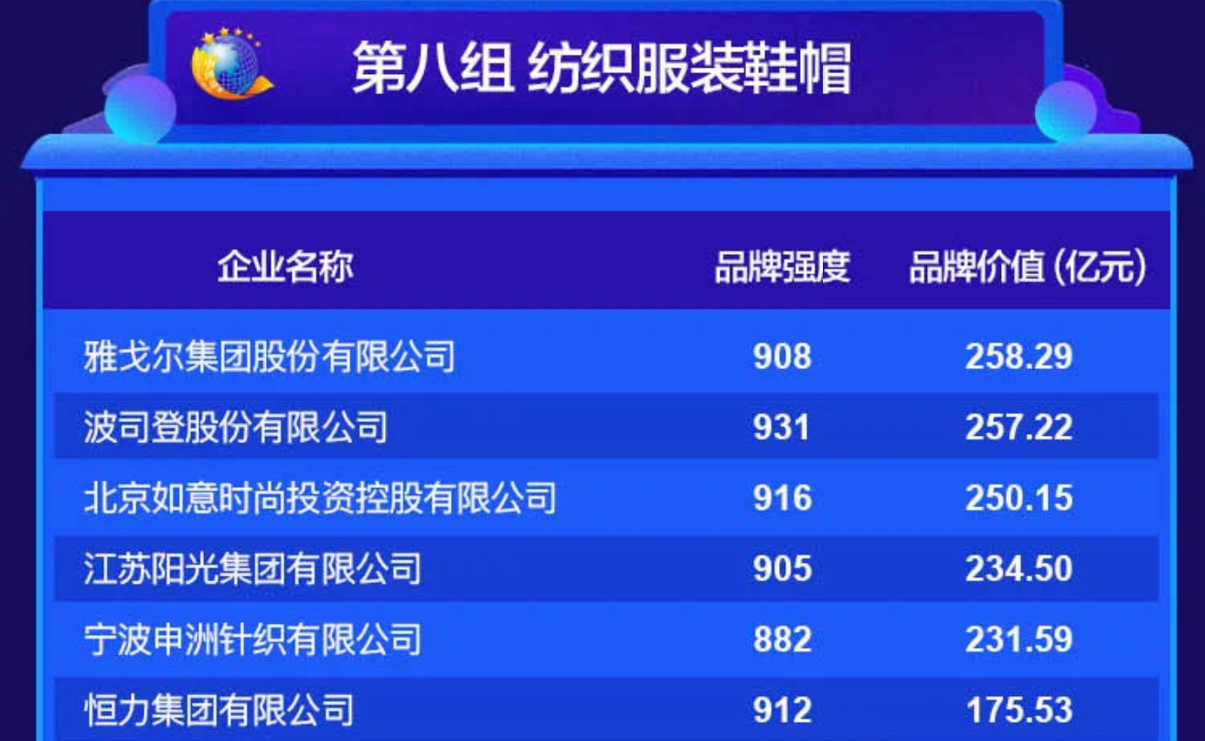2020中国品牌价值评价信息发布,雅戈尔获纺织服装类第一