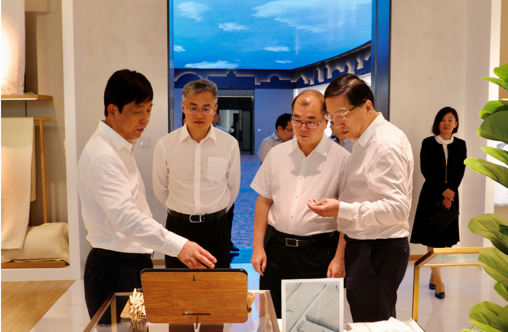 6月3日下午,时隔一年,浙江省委常委、宣传部长朱国贤再次到访雅戈尔,与浙江省委宣传部常务副部长来颖杰等领导一同对雅戈尔抗疫防疫以及生产经营复苏情况进行调研,雅戈尔集团李如成董事长陪同参观了时尚之星品牌展厅,随后举行了会谈。宁波市委常委、宣传部长李军陪同。