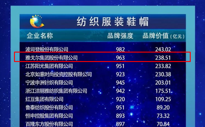 2019中国品牌价值评价信息发布,雅戈尔品牌价值238.51亿
