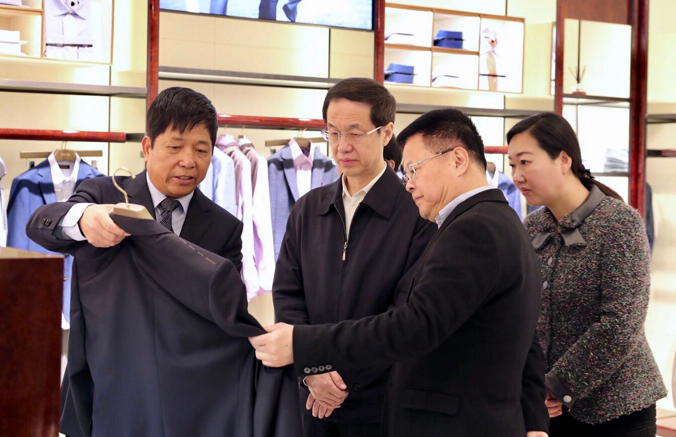 4月4日下午,宁波市召开传统制造业改造提升现场会,宁波市委副书记、市长裘东耀带领市区县各级部门负责人及企业代表共计130余人考察团来到雅戈尔,在雅戈尔李如成董事长的陪同下参观了雅戈尔西服智能工厂。