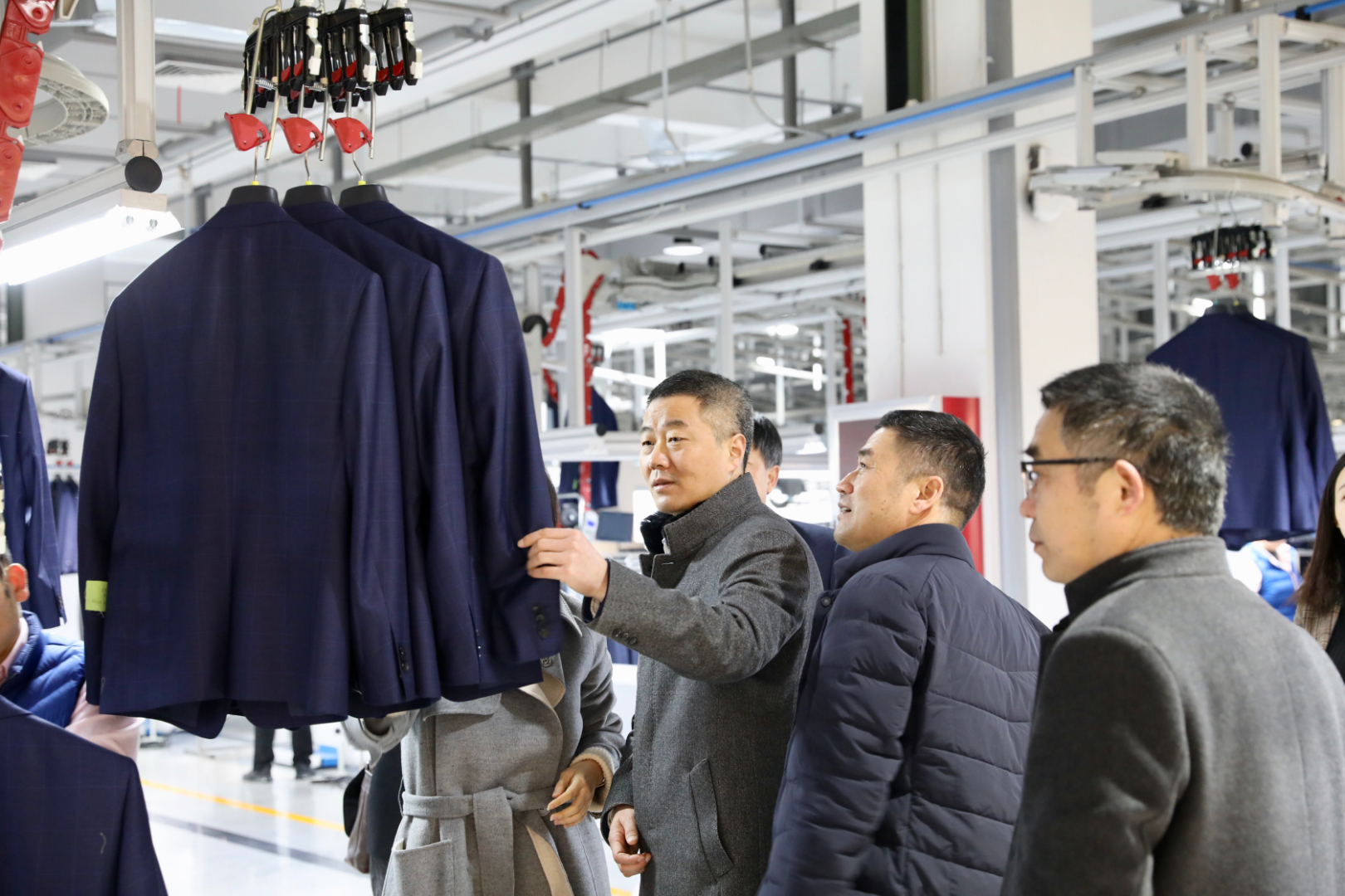 3月5日上午,安徽巢湖市委常委、市政法委书记葛世新一行莅临雅戈尔考察,雅戈尔集团常务副总经理胡纲高陪同参观了雅戈尔西服智能工厂以及雅戈尔品牌展厅,随后双方就如何继续深入开展合作进行了座谈。