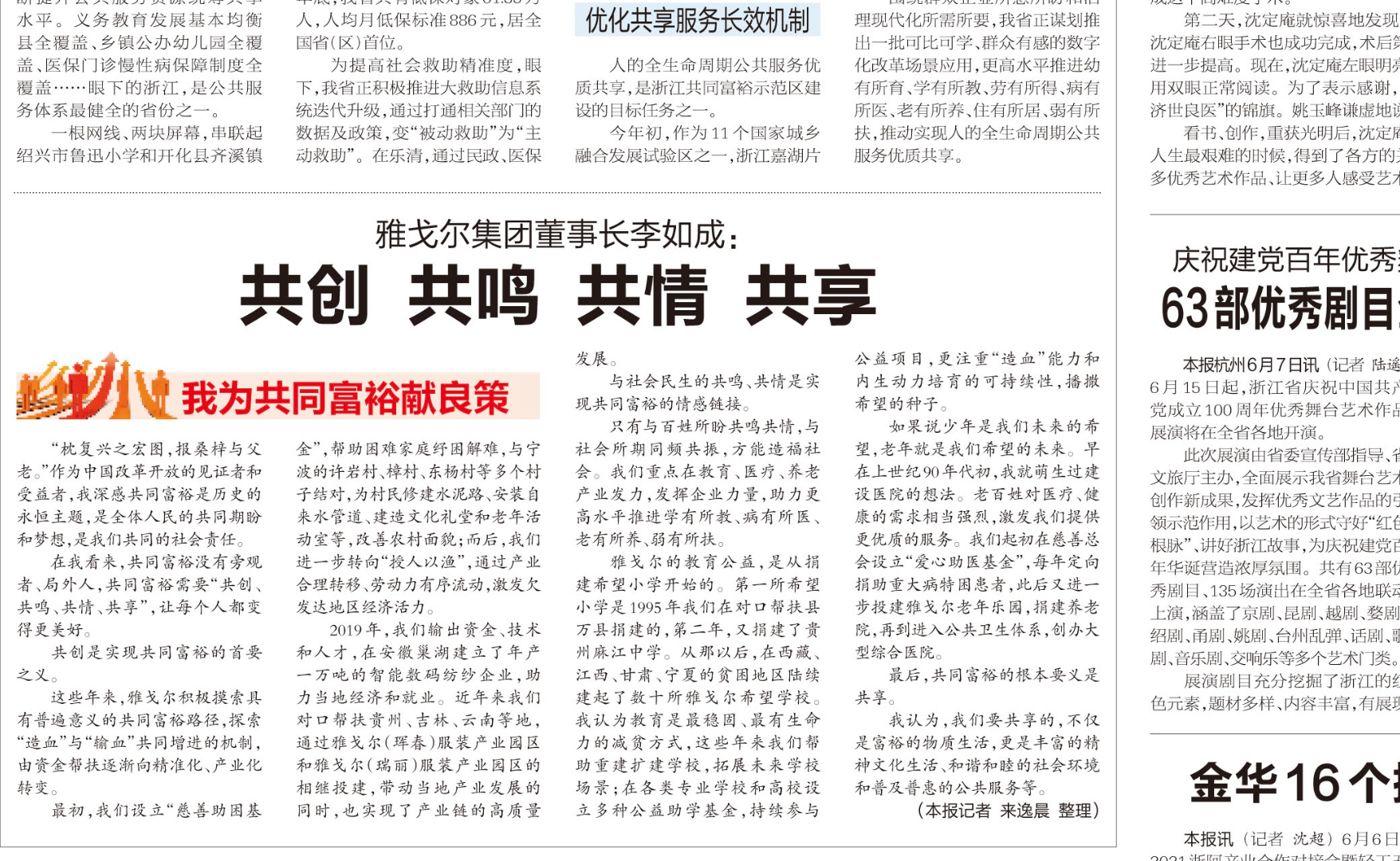 • 《浙江日报》刊发署名文章——雅戈尔集团董事长李如成:共创、共鸣、共情、共享