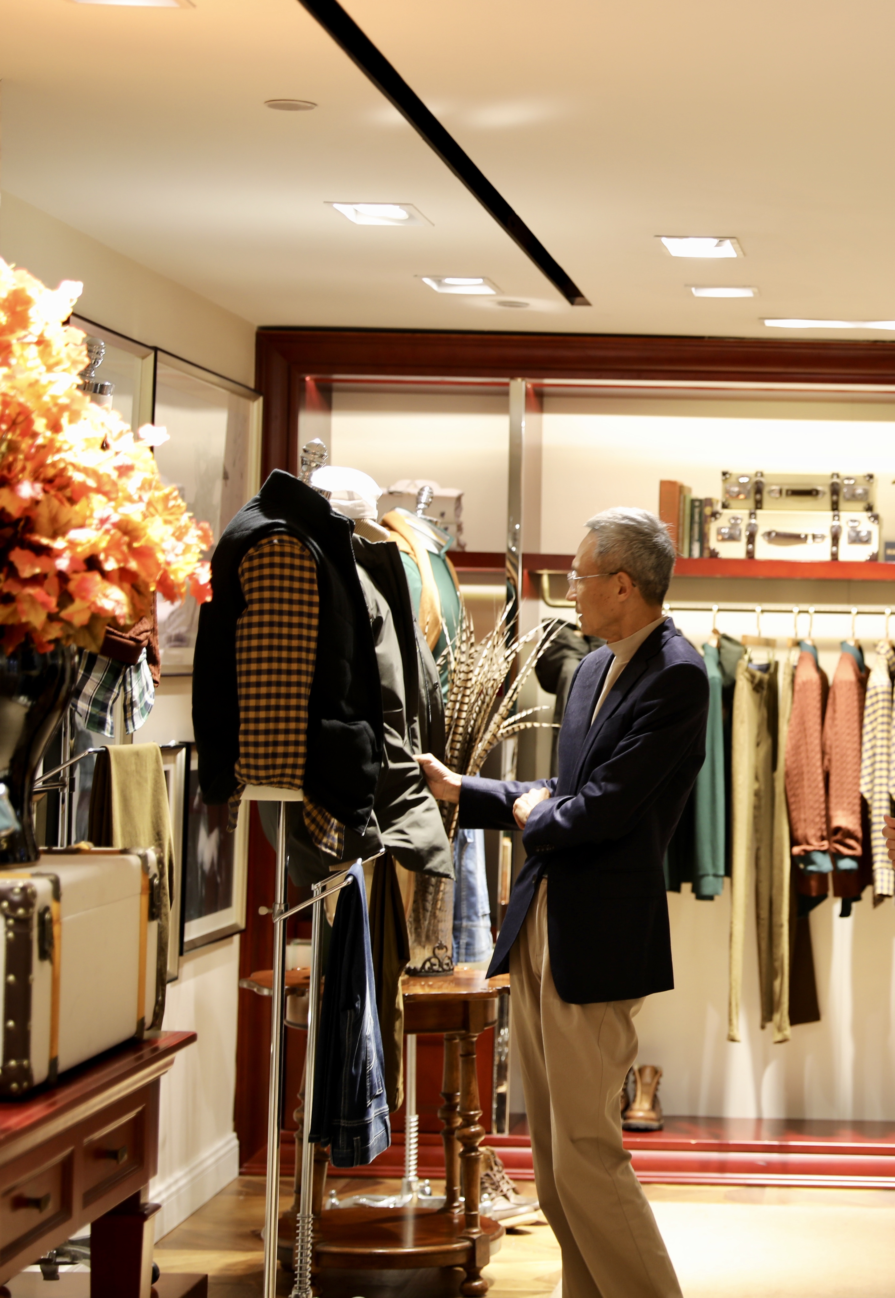 (许小年教授参观雅戈尔旗下哈特·马克斯品牌展厅) 宁波市委政策研究室副主任何兴法、海曙区区委书记孙黎明等陪同考察。 |