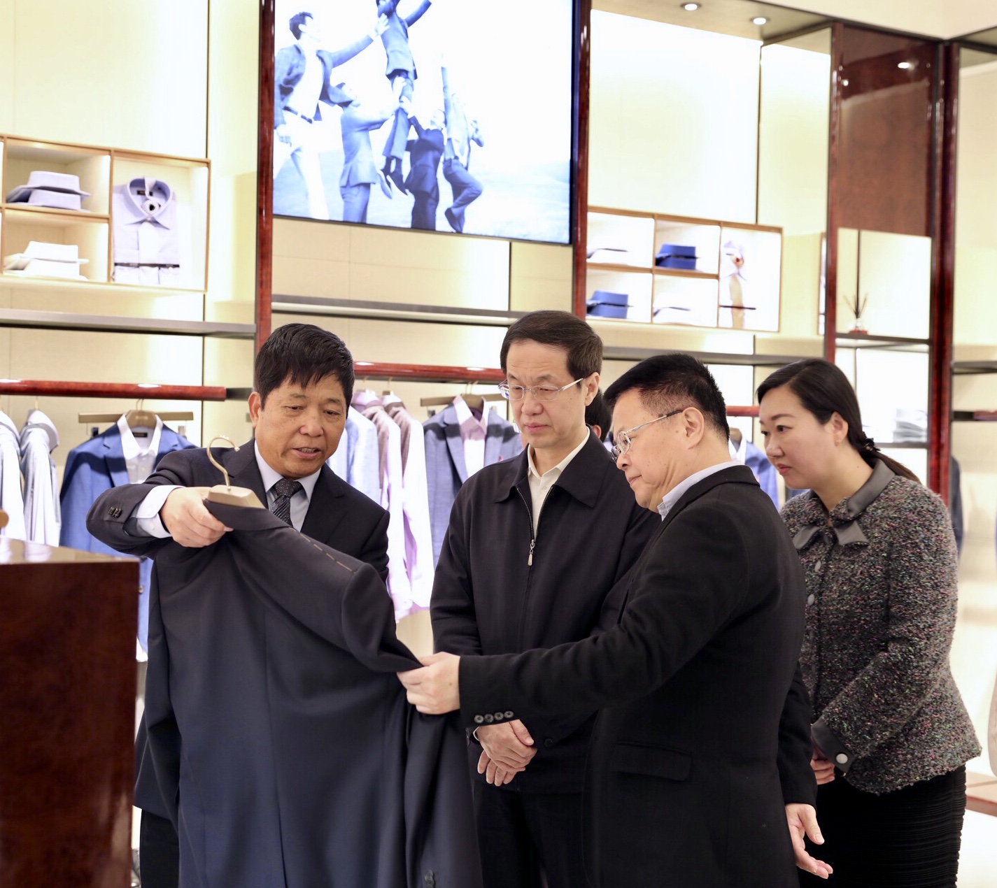 3月27日上午,吉林省委副书记高广滨一行莅临雅戈尔,浙江省委副书记、宁波市委书记郑栅洁,宁波市委常委、秘书长施惠芳等一同来访,雅戈尔集团董事长李如成陪同参观了雅戈尔品牌展厅以及西服智能工厂,介绍了雅戈尔的最新产品以及创新技术成果,并表示希望与吉林开展更为紧密的合作。