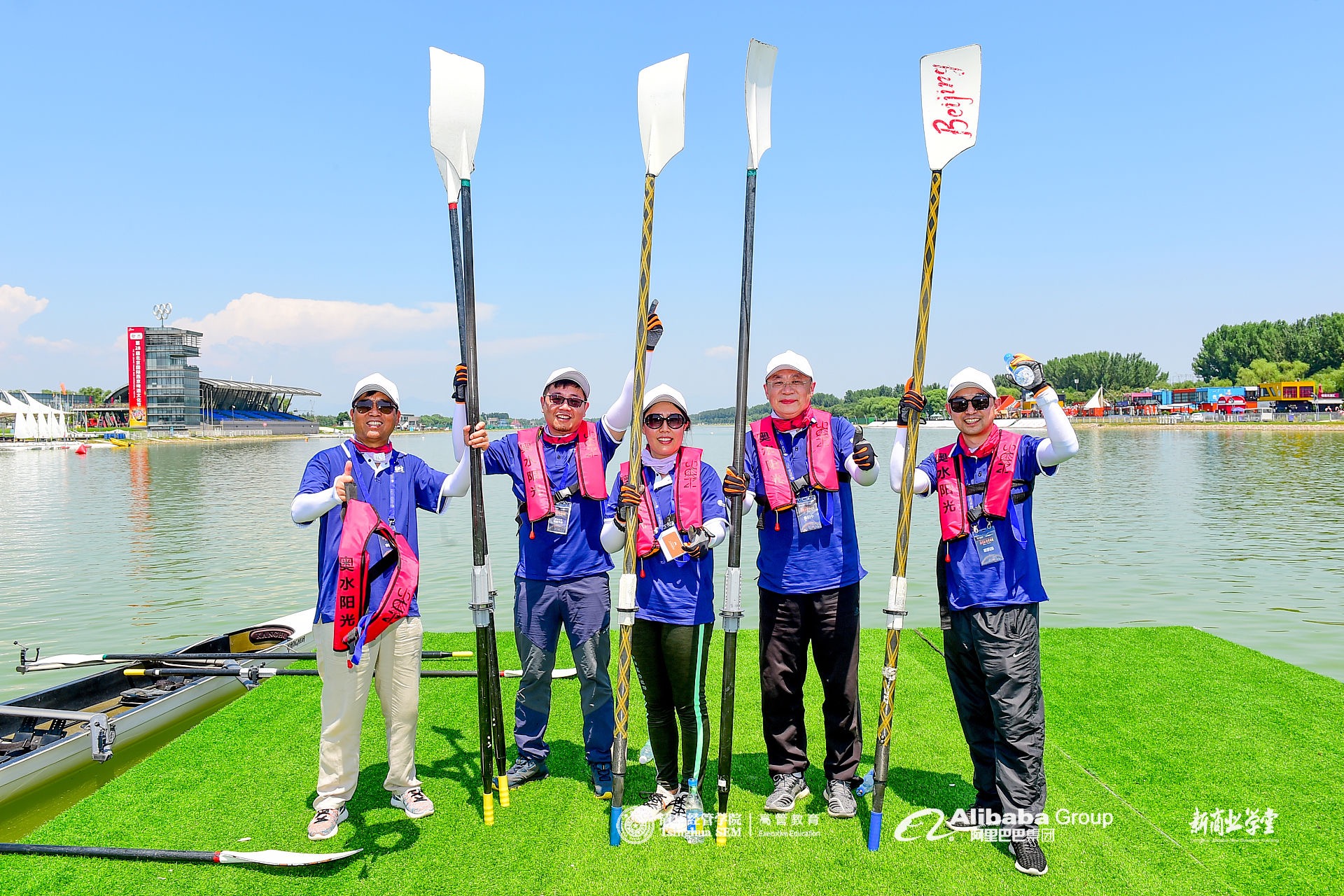 (图为七月北京“新商业学堂”赛艇拓展团队合影,左一为雅戈尔李如成董事长,右二为灵狐科技金羽中董事长)
