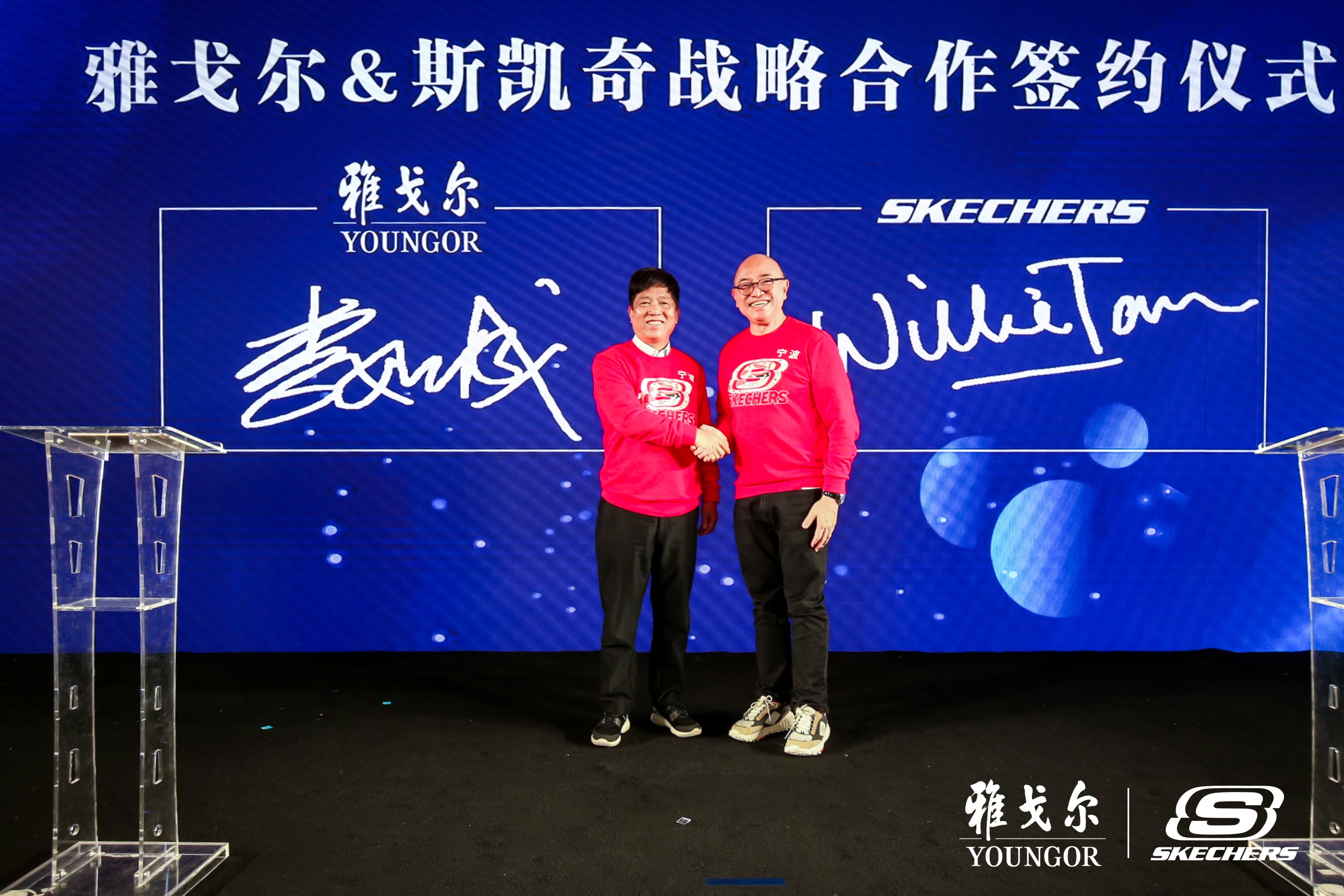 (雅戈尔集团董事长 李如成 与 斯凯奇中国、韩国及东南亚首席执行官 陈伟利 代表双方签约)
