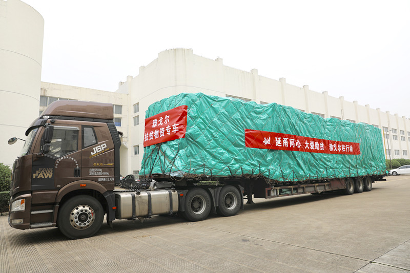 为积极响应“甬黔延情 你我同行”宁波市2018年全国扶贫工作,雅戈尔集团认捐了共计1000万物资。11月20日,集团整理了包含衬衫、茄克、裤子、毛衫等共16800件实物,首批物资价值500万,货车装载发往延边州。据悉,下一批价值500万物资将发往黔西南。