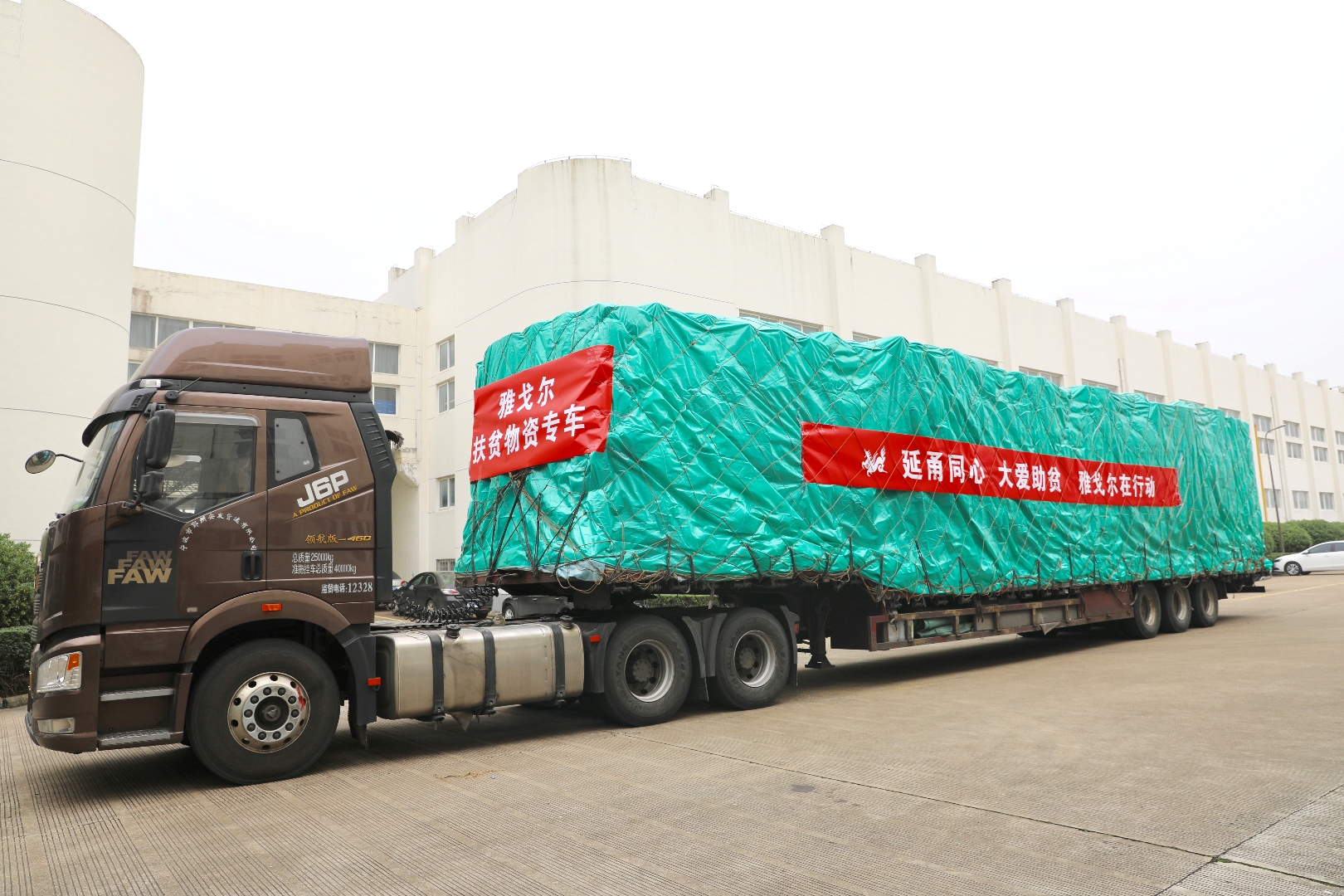 为积极响应“甬黔延情 你我同行”宁波市2018年全国扶贫工作,雅戈尔集团认捐了共计1000万物资。11月20日,集团整理了包含衬衫、茄克、裤子、毛衫等共16800件实物,首批物资价值500万,货车装载发往延边州。据悉,下一批价值500万物资将发往黔西南。
